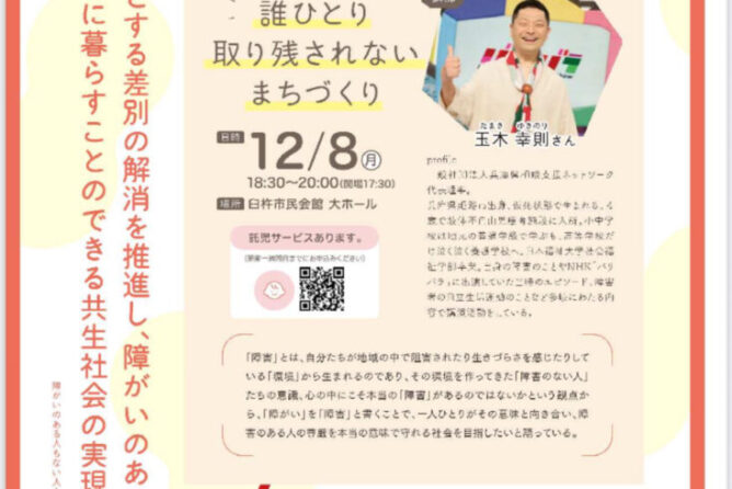 臼杵市人権講演会「誰ひとり取り残されないまちづくり〜フルインクルージョンをめざして〜」講師はバリバラのご意見番だった玉木幸則さん。