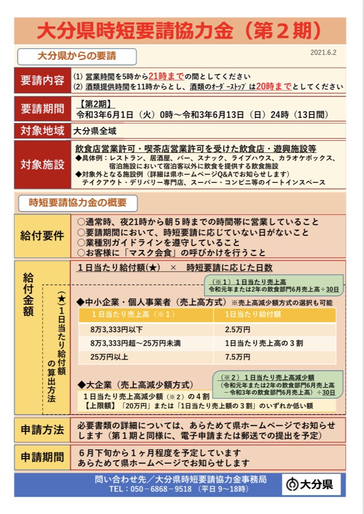 それに伴う第2期の「大分県時短要請協力金」について・・・