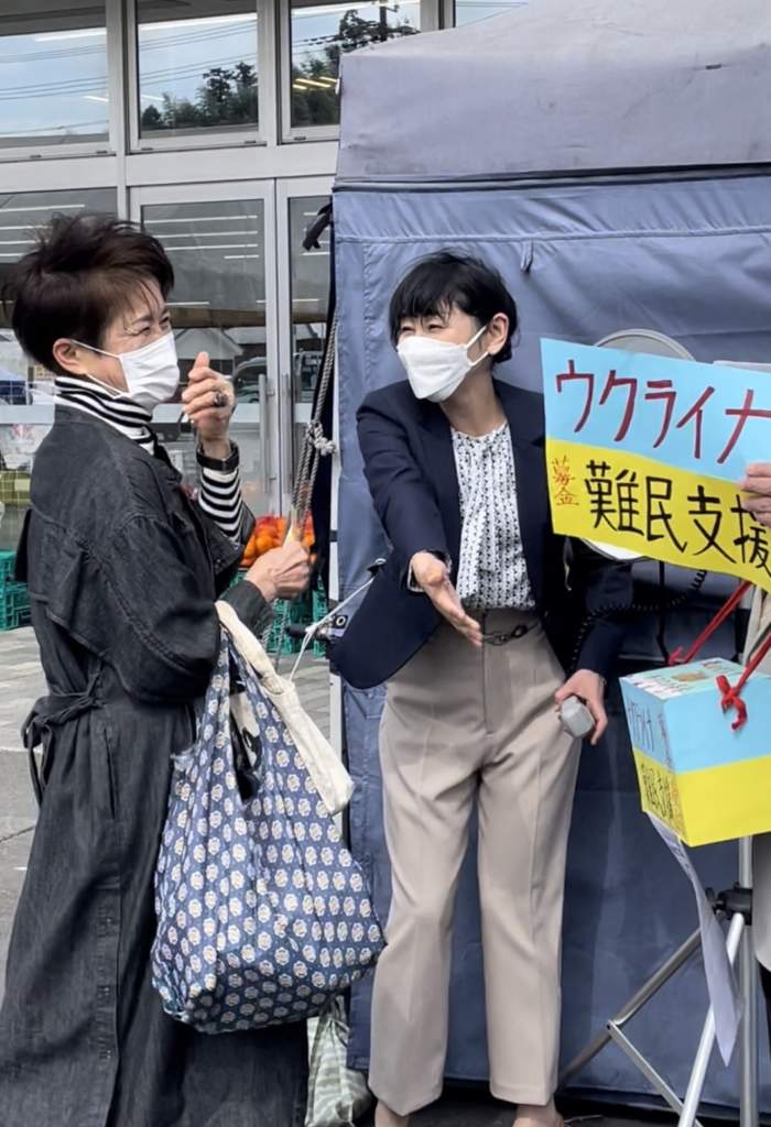 臼杵市内のスーパーの前をお借りして、ウクライナ難民支援の募金にご協力をお願いしました。