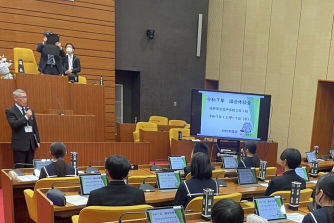 12/17.18 北中学校の3年生が臼杵市議会に見学に来てくれまして、